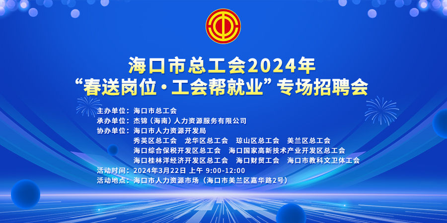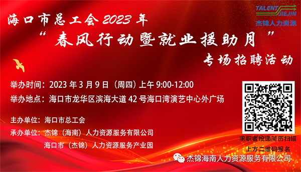 6月24日上午9時-12時,由??谑旋埲A區(qū)人力資源和社會保障局、海口市(龍華)人力資源服務(wù)產(chǎn)業(yè)園主辦,杰...